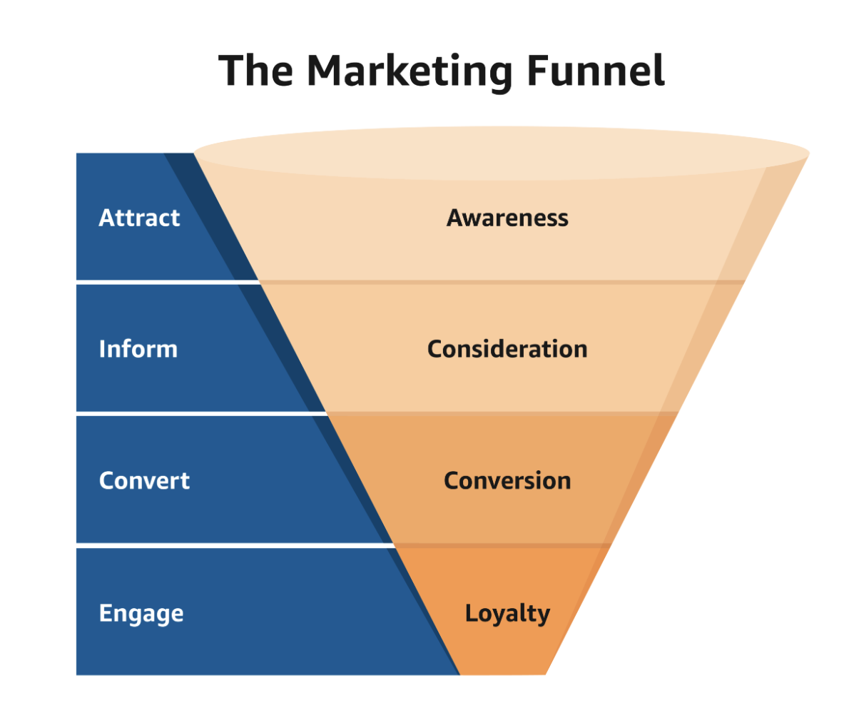 그렇다면 고객 퍼널은 어떤 단계들로 이루어져 있을까요? 일반적으로 다음과 같은 5가지 단계로 나눌 수 있습니다.